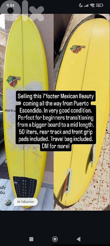 7 foot 50+ liters. in very good condition. 2 track pads and travel bag included.