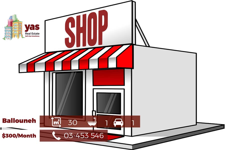 Ballouneh 30m2 | Shop | Rent | Prime Location | Wide Street | BA |
