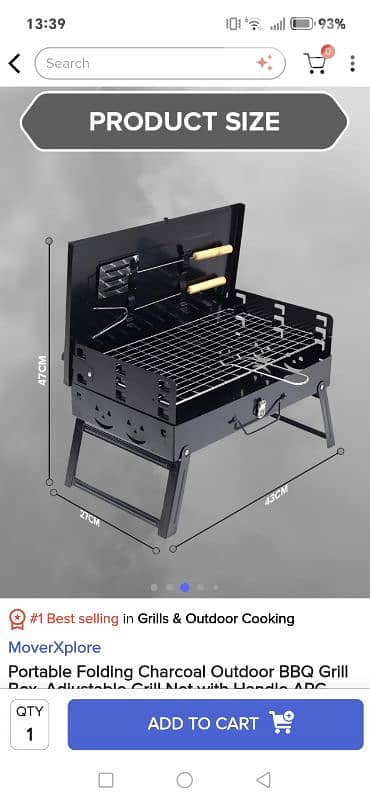 Portable Folding Charcoal Outdoor BBQ Gril Box, Adjustable Grill Net with Handle APG-KQ05 (W43 x D27 x H47)cm - Black