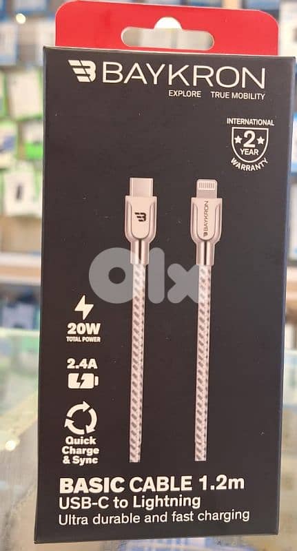 BAYKRON BASIC + CABLE USB-C TO LIGHTNING 1.2M 27W PD 3A