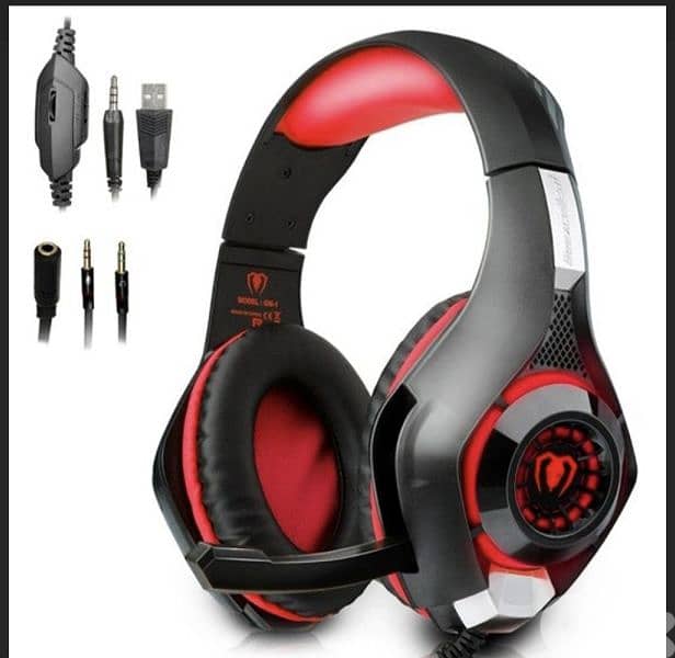 BEEXCELLENT GM1 WIRED 3.5MM OVER-EAR PRO GAMING HEADSET DEEP SOUND WITH LED LIGHTING AND MICROPHONE - RED