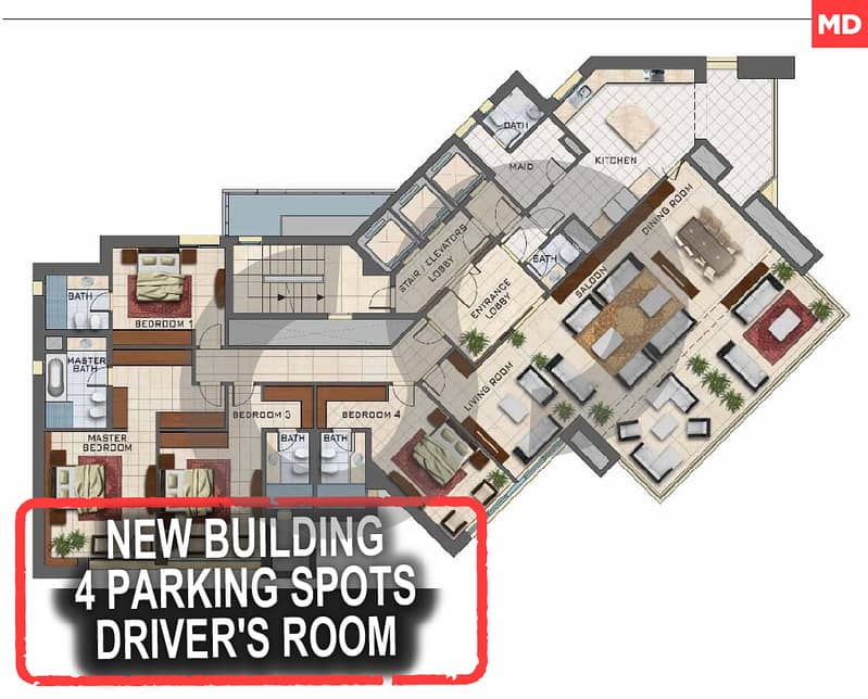 شقة فاخرة في طابق علوي في مبنى مسوّر، على الصف الثاني، بإطلالة بحرية خلابة، وشارع هادئ. تحتوي على ٤ غرف نوم رئيسية (منها جناح)، ٦ حمامات، ٤ مواقف سيارات تحت الأرض، غرفة سائق، وشقة واحدة في كل طابق. مبنى جديد بتشطيبات فاخرة. فرصة لا تُفوّت!