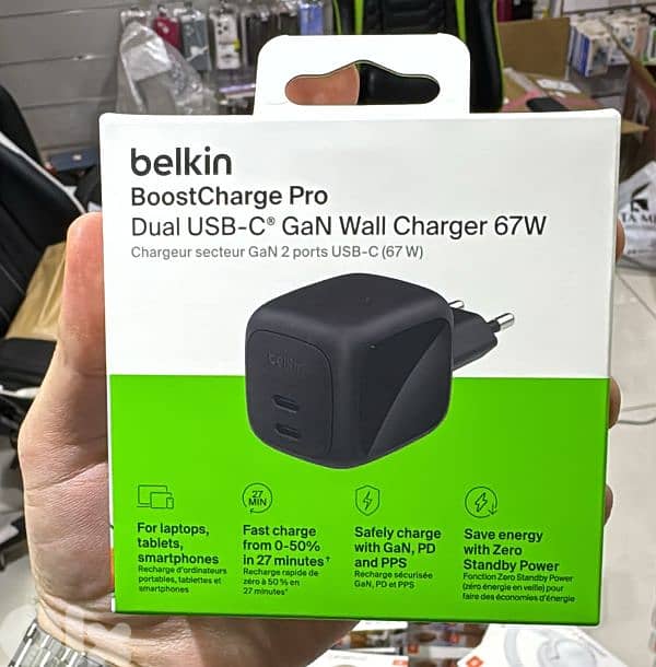Belkin Boostcharge pro 67w Dual usb-c gan wall charger 2 pin black