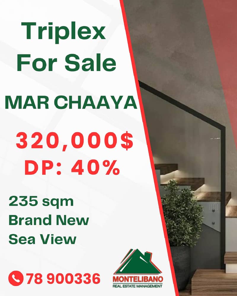 Brand New 235 sqm Triplex For Sale in Mar Chaaya (مار شعيا) with an Installment Plan and Sea View
