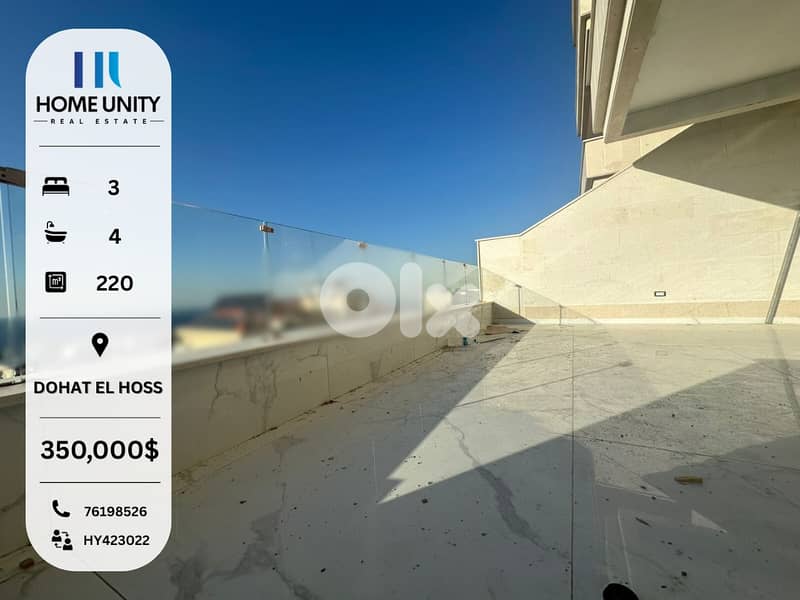 Consider this 220sqm apartment ,1st floor , located in dohat el hoss.