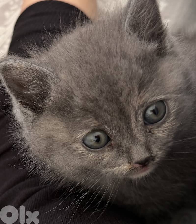 Cute grey British female kitten , 1 month and 2 weeks old, Very affectionate and playful WhatsApp 71190287.