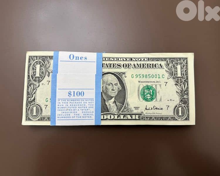 100 pieces of 1$ date 2001 unc & consecutives