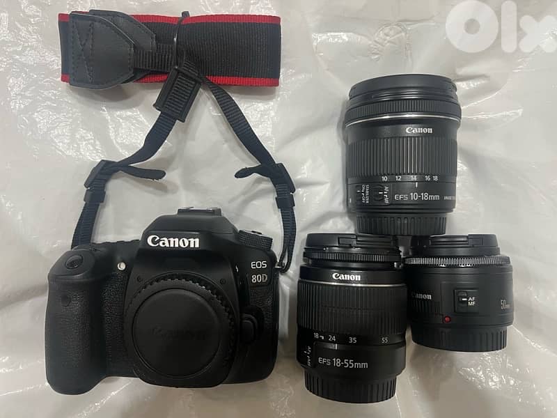 Super Clean Canon 80D with 3 Lenses and an sd Card shown in the picture! Used few times, no issue, no scratches. Selling to upgrade.