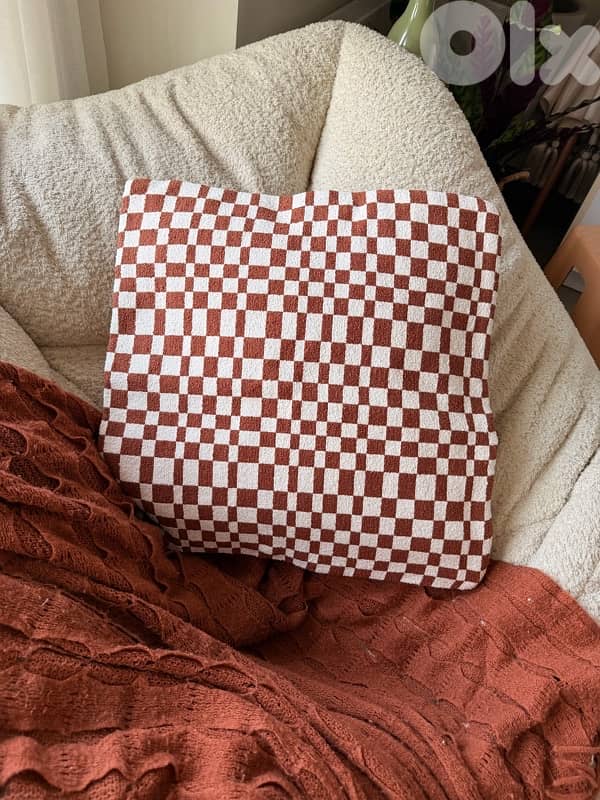 cushion 50x50 checkered pattern new modern, dark orange and white