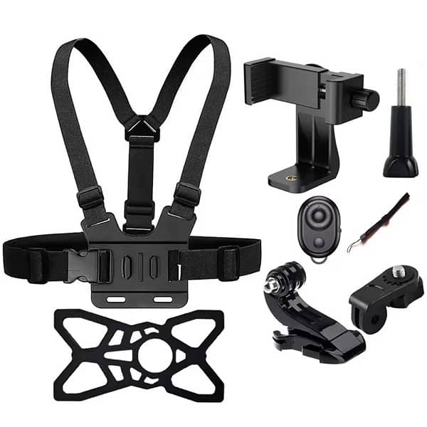 8-in-1 Chest Mount Harness for Phone Action Camera – 360° Rotating Holder + Bluetooth Remote (GoPro Compatible)