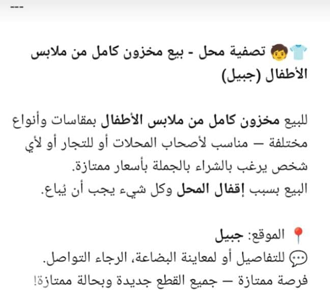 ملابس الأطفال فى جبيل