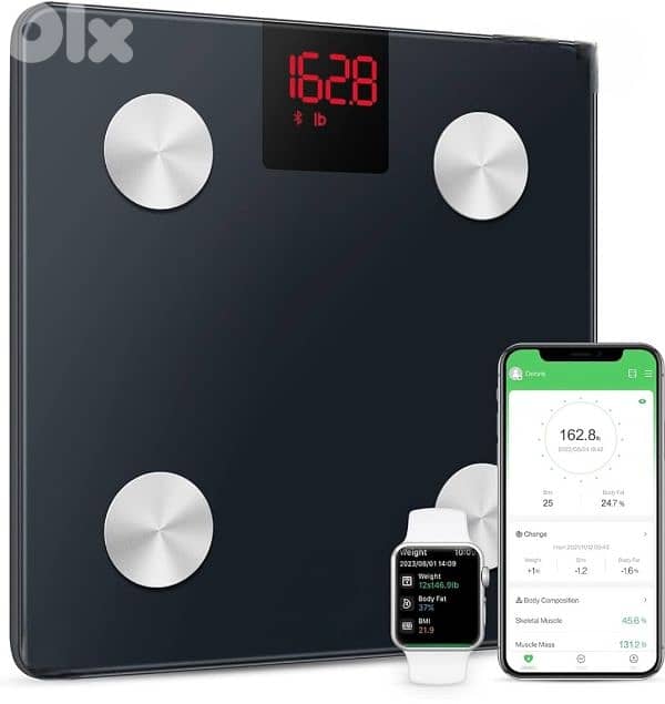 Body scale measuring ميزان ديجيتال يعمل على فحص الدهون وكمية المياه في الجسم. . . . تفعيل بلوتوس على الموبايل والساعات الذكية. . . . . . . . . . 40 $