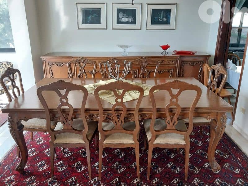 سفرة انتيك ٨ كراسي سفنج ضهر و قعدة سوبر مضغوط و مكتبة و تلفزيون ٤٣ انش