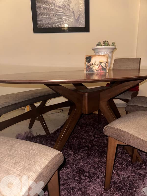dining table with four chairs and a bench used but in good condition