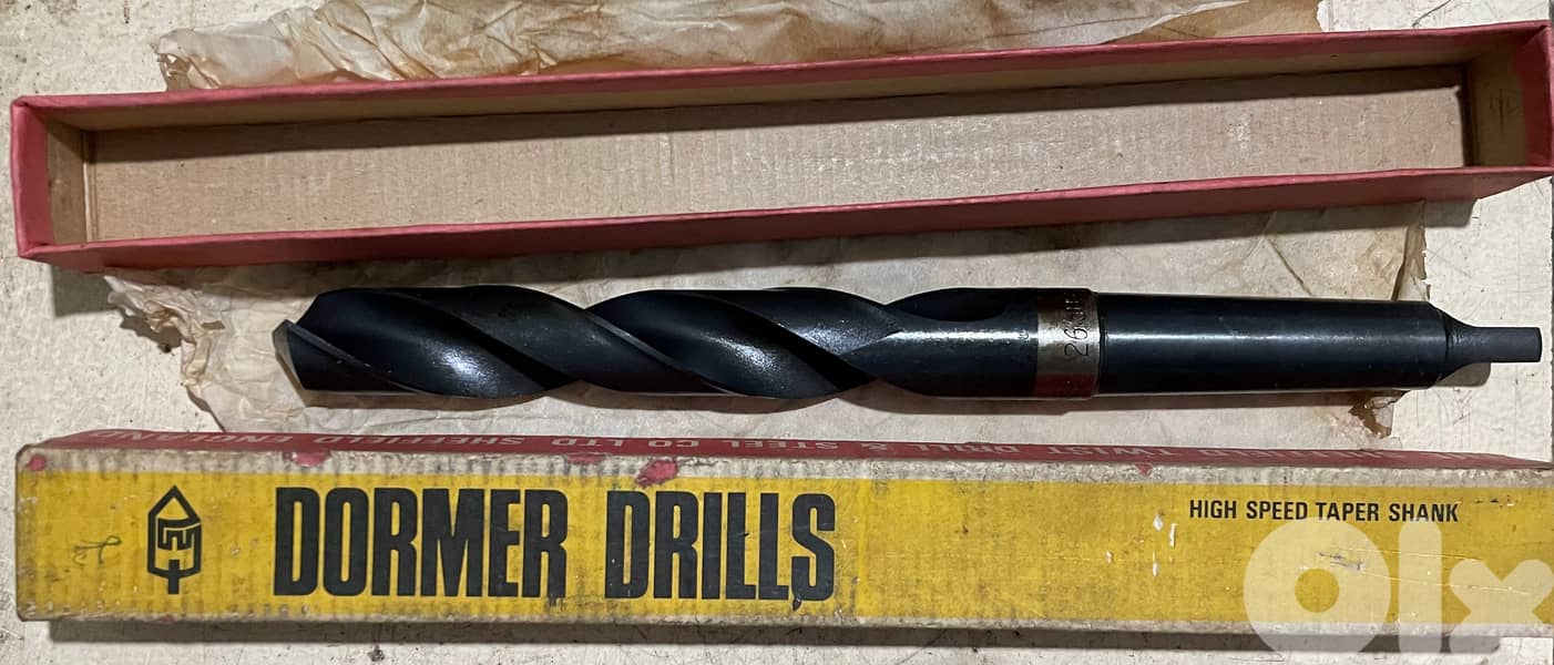 Brand new (Not Used) drills: Type: Dormer Drills (High Speed Taper Shank), Diameter: 26mm and 27.5mm (price 75 $ each) Type: Saben Drill (High Speed Taper Shank), Diameter 39 mm (price 75 $).