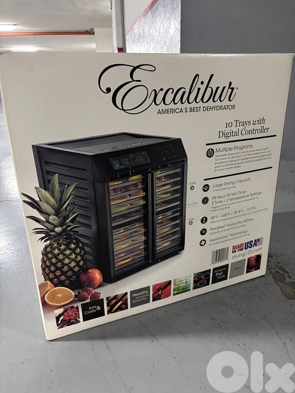 10 Trays with digital controllers. Multiple programs. Large Drying Capacity. 99 Hour 59 Minute Timer- 2 Time / 2 Temperature setting. 29.4-73.9 Celsius. Parallexx Horizontal Airflow. Hyperwave technology.
