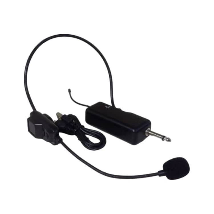This wireless headset microphone system is designed for hands-free use, making it ideal for instructors, presenters, tour guides, fitness trainers, and public speakers. The lightweight headset sits comfortably around the head and positions the microphone close to the mouth for clear and consistent voice pickup.