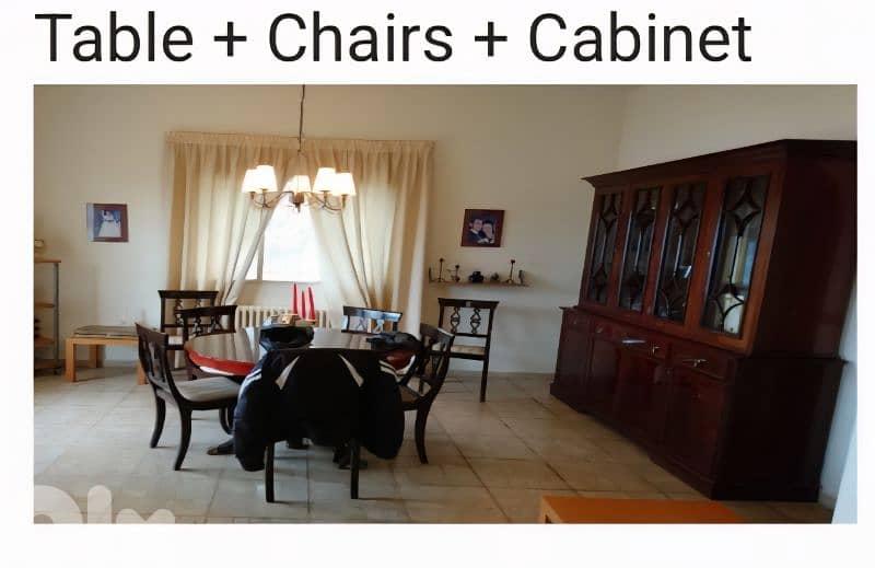 table plus 8 chairs plus cabinet