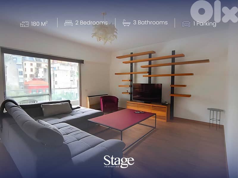 Listed by Stage Properties Lebanon, this 180 sqm fully furnished apartment in Gemmayzeh, Beirut is available for rent at $22,000 yearly.