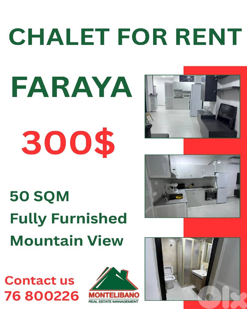 Fully Furnished Chalet 50 sqm For Rent in Faraya (فاريا) with Mountain View
