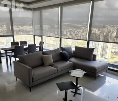 A high end fully furnished high floor 3 bedroom duplex with open view, a big terrace and a private pool in the prime area of Sioufi in Achrafieh is not to be missed!