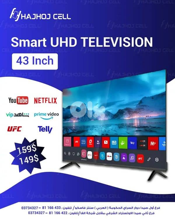 تليفزيون جديد بعده بالنايلون و القاتورة بتاريخ ١٤/١/٢٠٢٦ سبب البيع اجاني هدية و ما بيلزمني already عندي تلفزيون شاشة اكبر سعره بالقاتورة ١٤٩$ (الحجحوج سل) البيسارية