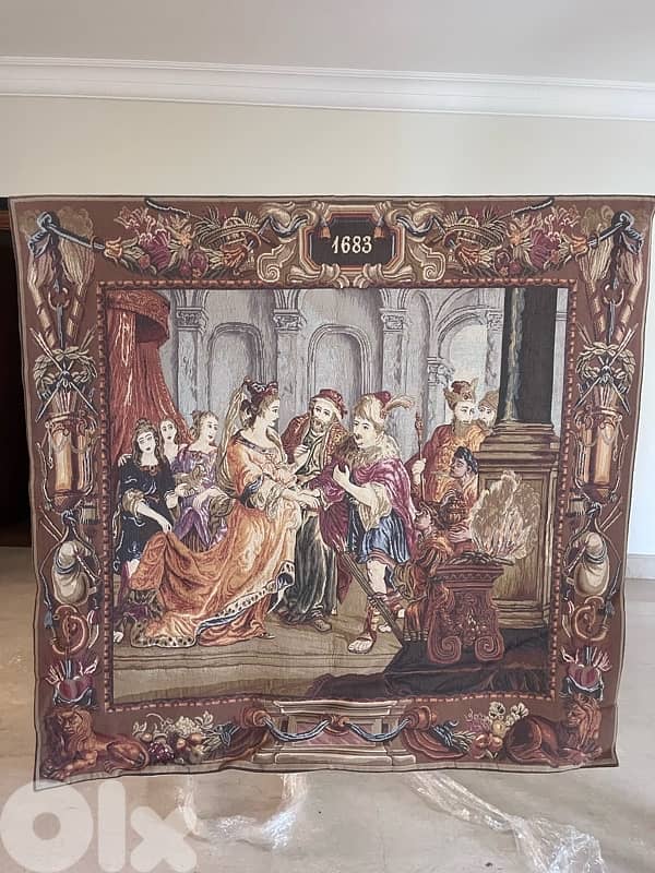 home vintage high quality decor Gobelin wall art and its iron stick hanger