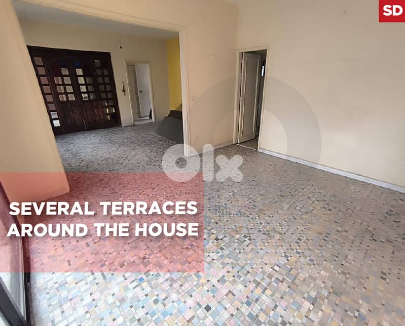 بمساحة 300 متر مربع مناسبه لمن يبحث عن فرصه اعاده تصميم للشقق. تتميّز الشقة بمساحات واسعة ومضيئة، مع صالونات تفتح على تراسات متعدده تحيط بالشقة بالكامل، ما يؤمّن إنارة طبيعية وإحساس بالانفتاح. فرصة مثالية للتشطيب حسب الذوق.
