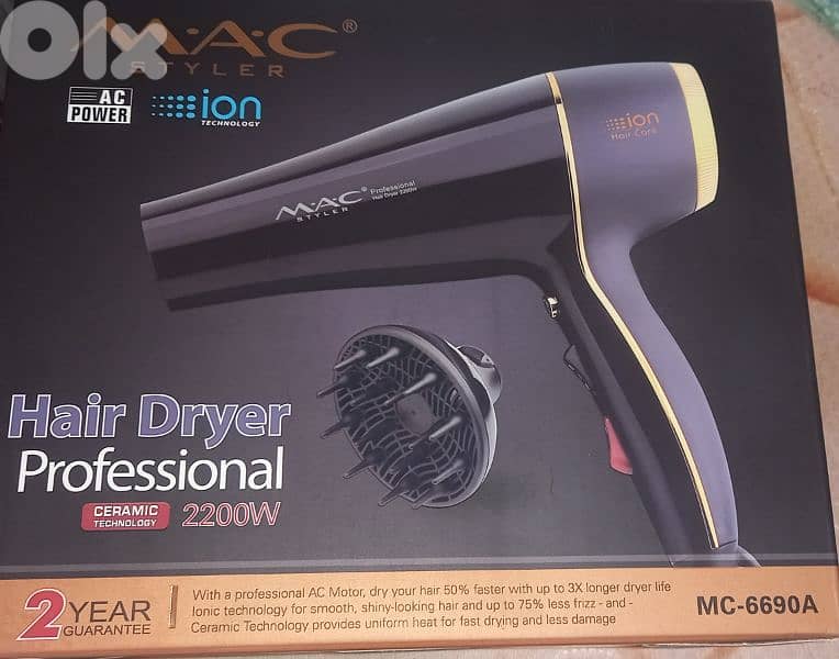 mac styler hairdryer مستعمل كم مرة فقط بعدو جديد مع علبته 2200w
