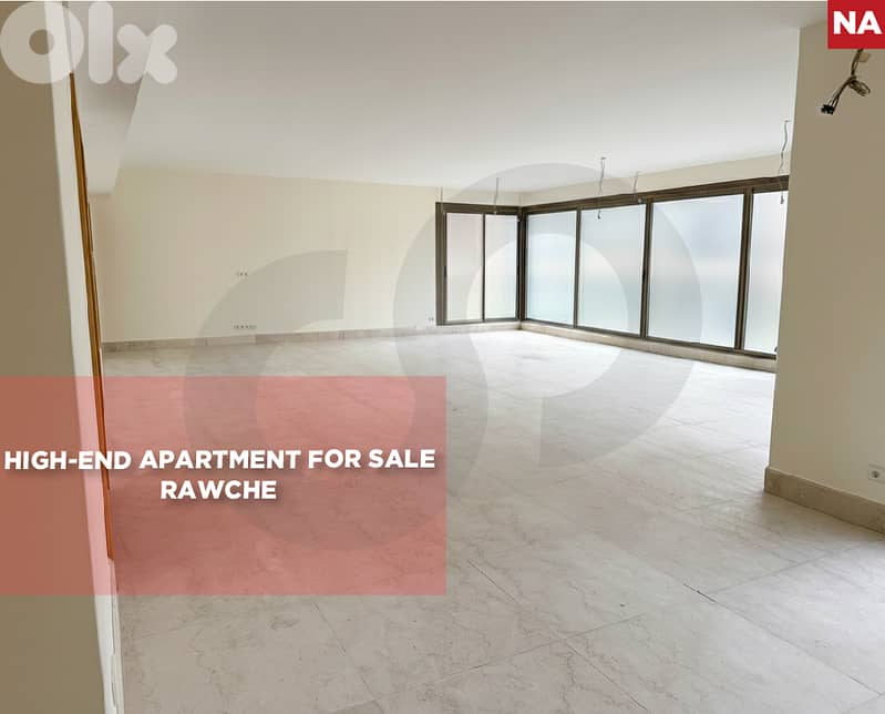 An exceptional opportunity to acquire a luxury apartment in one of Beirut’s most prestigious and sought-after neighborhoods — Rawche. This unfurnished residence is located in a gated, high-end building offering privacy, security, and refined living. It is Close to all city amenities: restaurants, cafés, shops, hotels, and services