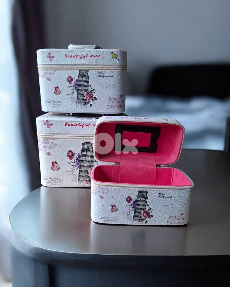 علبة مكياج كتير مرتبة. Set : 3pcs 24*16*18 cm. 22*14*15 cm. 19.5*11*11 cm.
