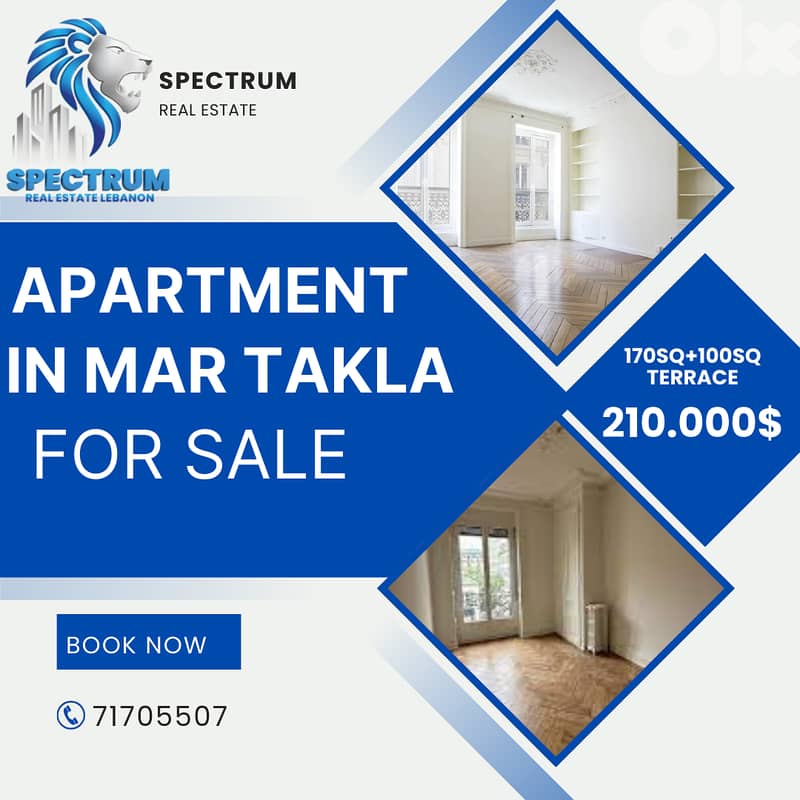 HOT DEAL!! APARTMENT FOR SALE IN MAR TAKLA HAZMIEH + TERRACE