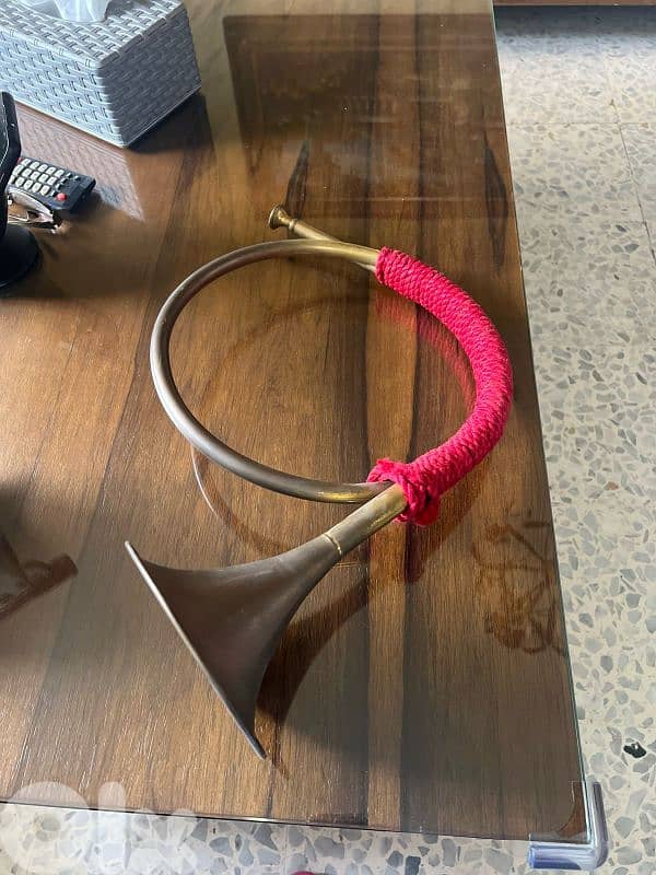 Hunting horn copper wrapped with red rope. trumpet بوق