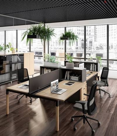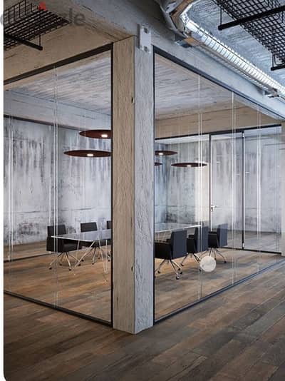 High ceiling office industrial design style