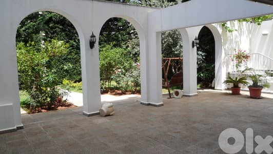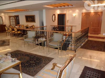 An elegant duplex is for rent in Ain Saadeh - Ain Najem road, Green Valley area. It consists of an indoor space of approximately 600 sqm residence (Bas. 1 + Bas. 2) with two-door entrances at each level and outdoor space around 600 sqm for gardens and terraces with private doorway plus stair from lower garden. The duplex consists of four bedrooms (3 master bedrooms), four salons, two dining rooms, two living rooms, a kitchen, a bar with pantry plus a dumbwaiter to the kitchen, a billiard space, six bathrooms, a laundry room, and two maid rooms (with WC). It benefits from an office (with WC), five parking spaces (2 private covered in the house with remote door and three outdoors), A/C split units into bedrooms, and provisions for salons, a heating system with a particular boiler in the technical room. Also, it has a private water tank near 16,000 liters in the technical room with a pump, videophone, an oak for doors and kitchen cabinets, a marble 80 x 80 cm in all saloons/receptions, a private generator 30 A, a building elevator access to 2 floors of the duplex, a building janitor, a solar system for water heating, a central telephone system. Besides, it has a UPS system (installed in the whole house), a Merlin-Gerin lighting system, Le Grand electrical switches, a security alarm system, and a jacuzzi.