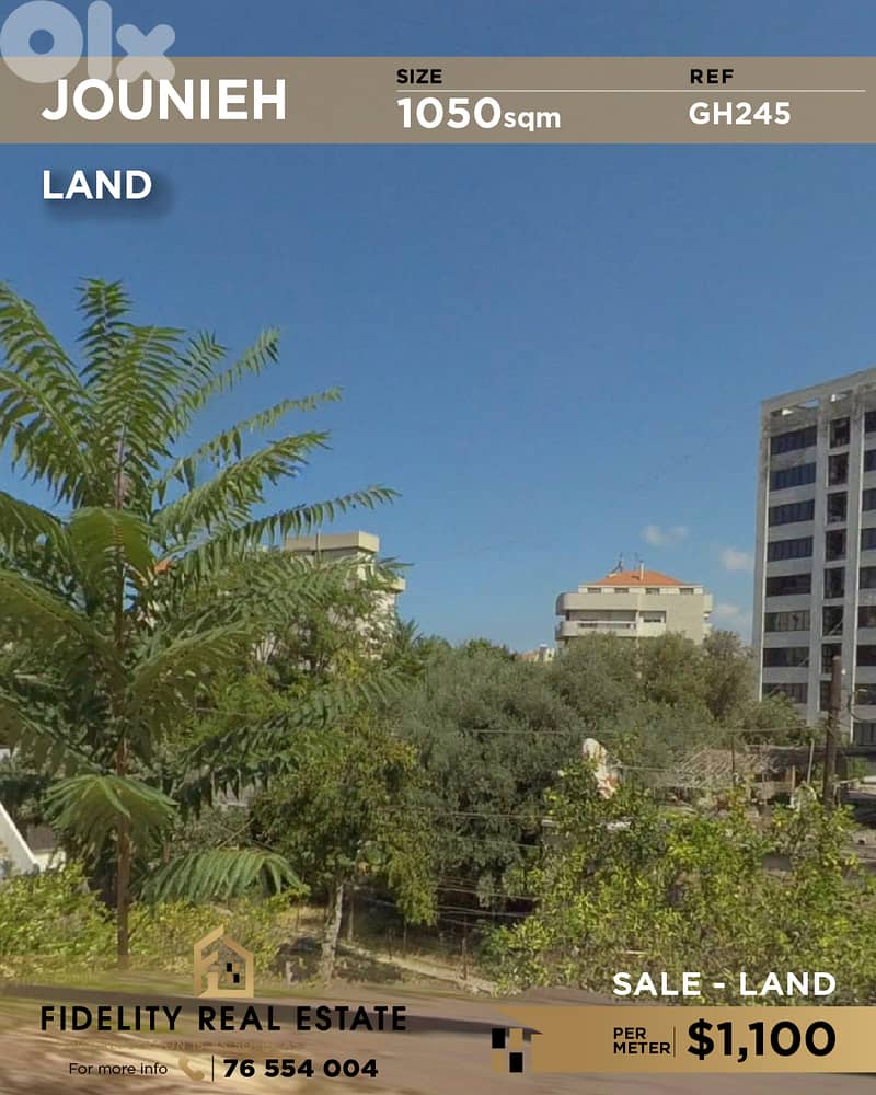 A 1050sqm land for sale in Jounieh GH245 Zone: 50x2 REF:GH245 price: 1100$/sqm + 2.5% commission Contact us on 76554004 أرض مساحتها ١٠٥٠ مترًا مربعًا للبيع في جونيه GH245 المنطقة: ٥٠×٢ الرقم المرجعي: GH245 السعر: ١١٠٠ دولار أمريكي/متر مربع + عمولة %٢. ٥ للتواصل: ٧٦٥٥٤٠٠٤