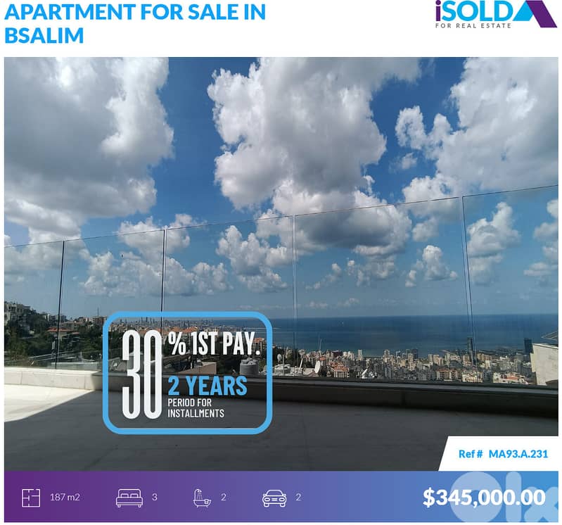 Brand new 187 m2 apartment having an open sea view for sale in Bsalim
