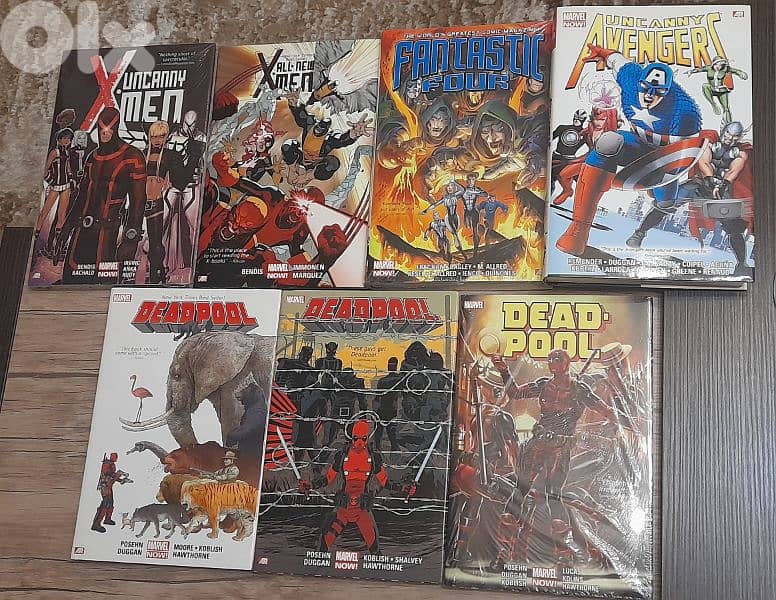 1- Uncanny Avengers omnibus by Remender 2- Fantastic four omnibus by Fraction 3- All new x-men deluxe edition vol. 1 by Bendis 4- Uncanny X-MEN deluxe edition vol. 1 by Bendis 5- Deadpool by Posehn deluxe edition vol. 1/2/3