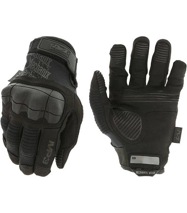 The mighty M-Pact 3 protects military and law enforcement professionals with full-coverage hand protection in the field. A dense one-piece Thermoplastic Rubber knuckle guard is anatomically designed to absorb forceful impact to the back of the hand and improve overall mobility during hard-charging operations. M-Pact 3 tactical gloves feature internal fingertip reinforcement for extreme abrasion resistance and embossed patterning for added grip where you need it most.