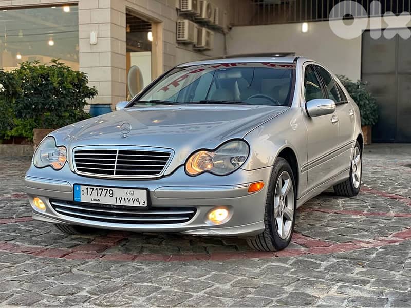 Condition New Mercedes Benz C230 kompressor model : 2004 ( البيئة موجودي ) Steering wheel system, leather seats Sunroof , new tires call : 70 494 211