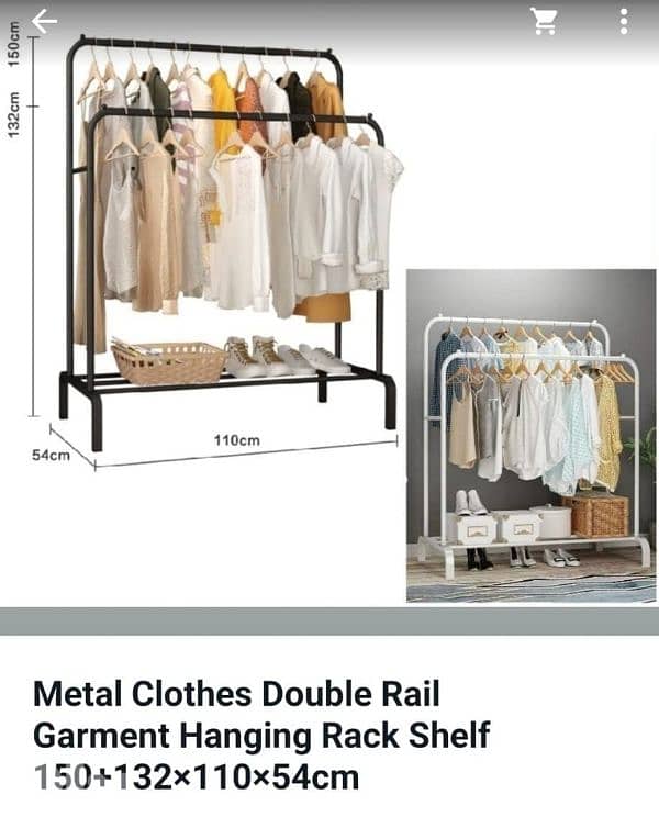Metal clothes double rail garment hanging rack shelf 150+132 x110 x 54 cm Very good condition 1 for 18$, 3 PCS for 45$