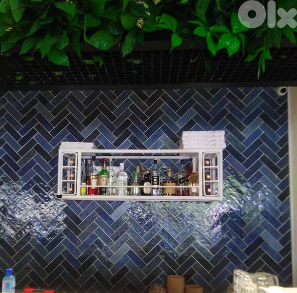 High-quality metal wall-mounted shelf in great condition, with a strong and durable build. Clean, modern design, ideal for a bar, kitchen, or living space. Details: Main shelf: 130 × 30 cm Depth from wall: 40 cm 6 mm thick glass shelf included Removable side pieces Each side piece: 30 × 30 × 12 cm Solid, stable, great-quality metal construction رف جداري معدني عالي الجودة وبحالة ممتازة، يتميز بمتانة عالية وتصميم أنيق وحديث. مناسب للبار، المطبخ، أو غرفة الجلوس. التفاصيل: أبعاد الرف الرئيسي: 130 × 30 سم العمق عن الحائط: 40 سم رف زجاجي بسماكة 6 ملم قطع جانبية قابلة للإزالة أبعاد كل قطعة جانبية: 30 × 30 × 12 سم هيكل معدني قوي وثابت بجودة ممتازة