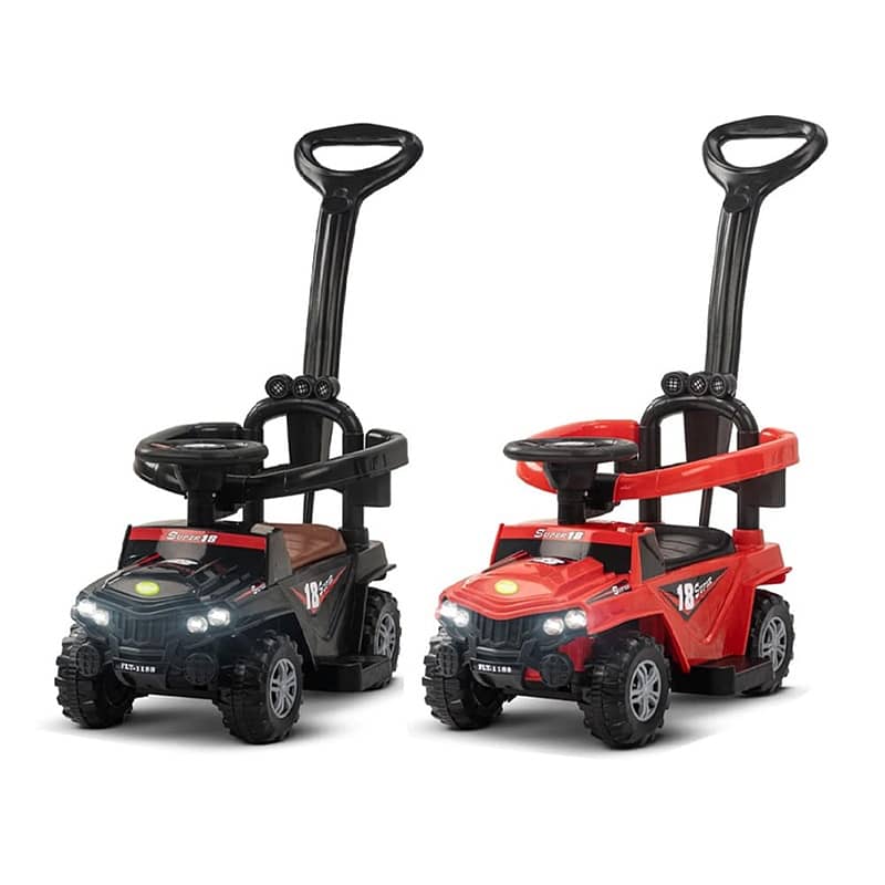بالنسبة للوالدين، تم تجهيز السيارة بقضيب دفع مريح موجود في الخلف، مما يتيح سهولة التحكم في السيارة وتوجيهها، مما يجعلها مثالية لتوجيه رحلة طفلك. توجد مظلة ملحقة بقضيب الدفع توفر الظل والحماية من أشعة الشمس أثناء المغامرات الخارجية.