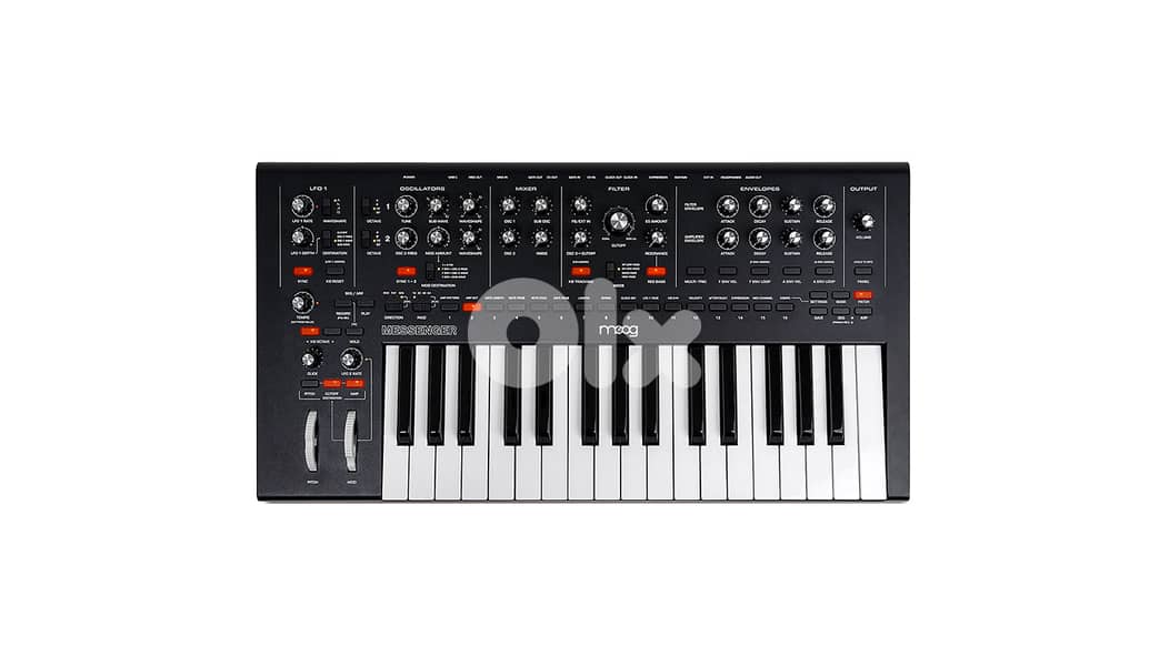 32-key Monophonic Analog Synthesizer with Aftertouch-enabled, Semi-weighted Keybed, 2 VCOs, Sub-oscillator, Noise Generator, Ladder Filter, 2 ASDR Envelopes, 2 LFOs, and Arpeggiator/Sequencer