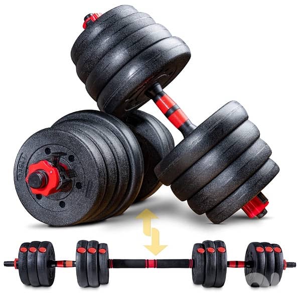 : Whether biceps curls or bench pressing - thanks to the extra long 400mm connector, the AH150 2in1 dumbbell set combines both functions in one product. Convert your dumbbell easy into a barbell and benefit from the space-saving solution for your training at home!