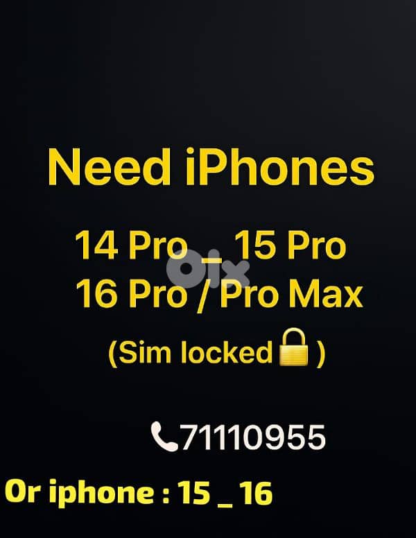 مطلوووب iphone: 14 pro _ 15 pro _ 16 pro or 16 or 15 ( SIM locked ) or not 71110955