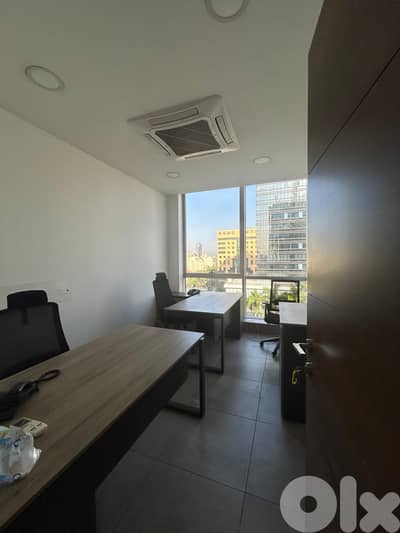 مكتب جديد للإيجار مؤلف من غرفة إستقبال، أربع غرف مكاتب، غرفة إنتظار، غرفة إجتماعات، مطبخ، حمامان، موقفين، مولد كهربائي: