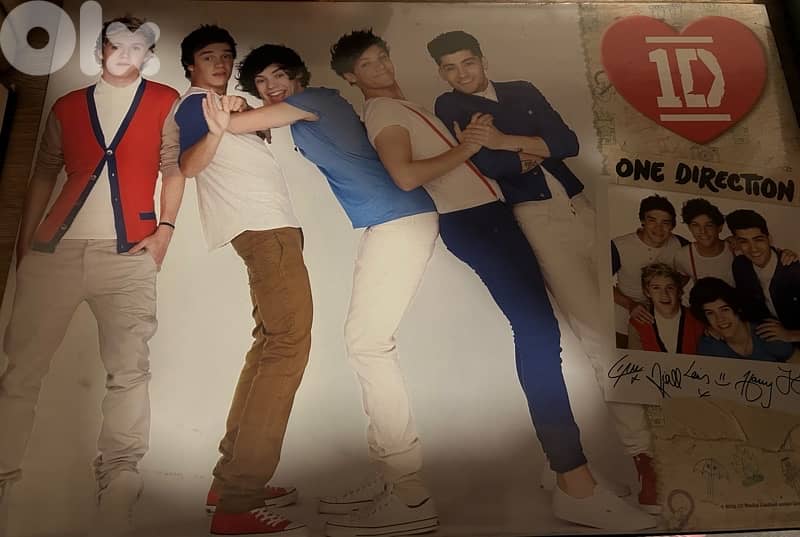 Large glossy poster featuring all five members of One Direction. In good condition, perfect for bedroom or fan collection.