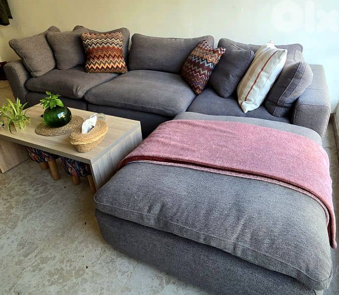 مركّب حالياً على شكل كنبة L (كما هو موضح في الصور)
