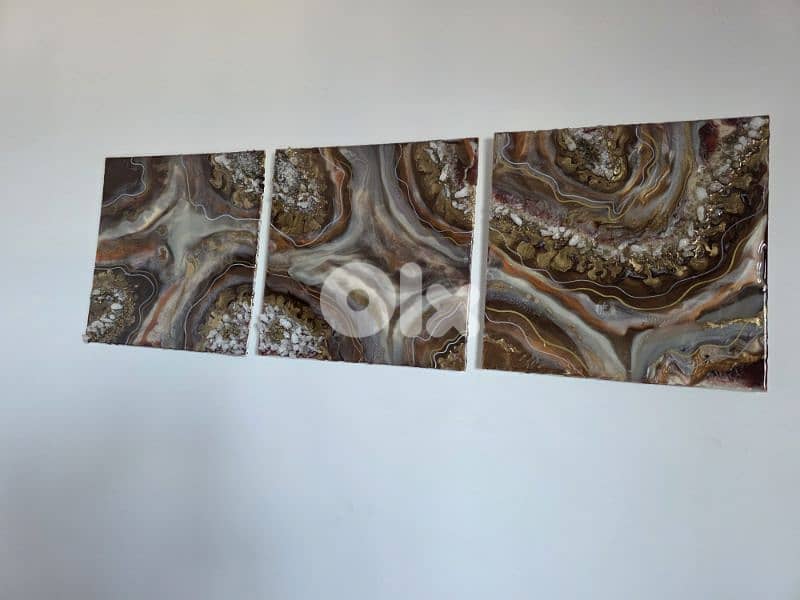 Resin set : 3 paintings + watch 40 X 40 cm each